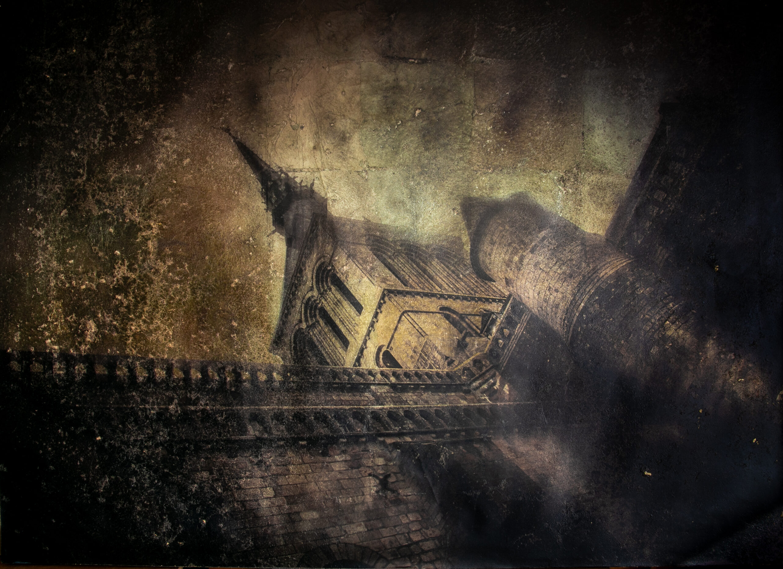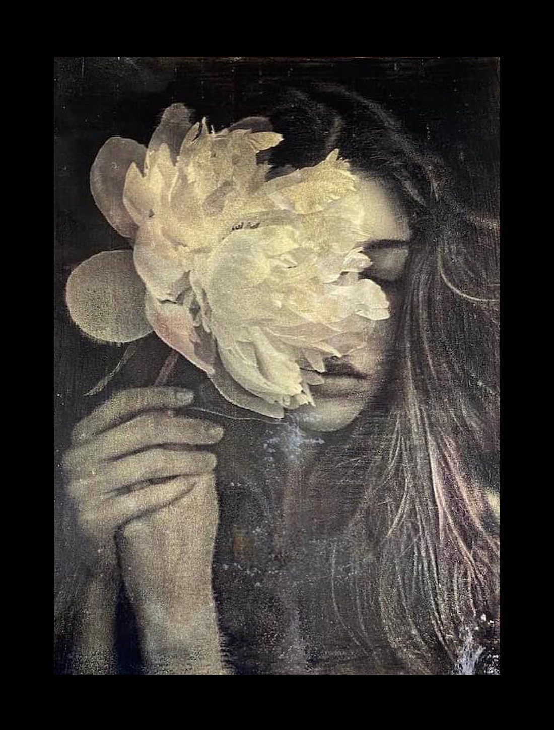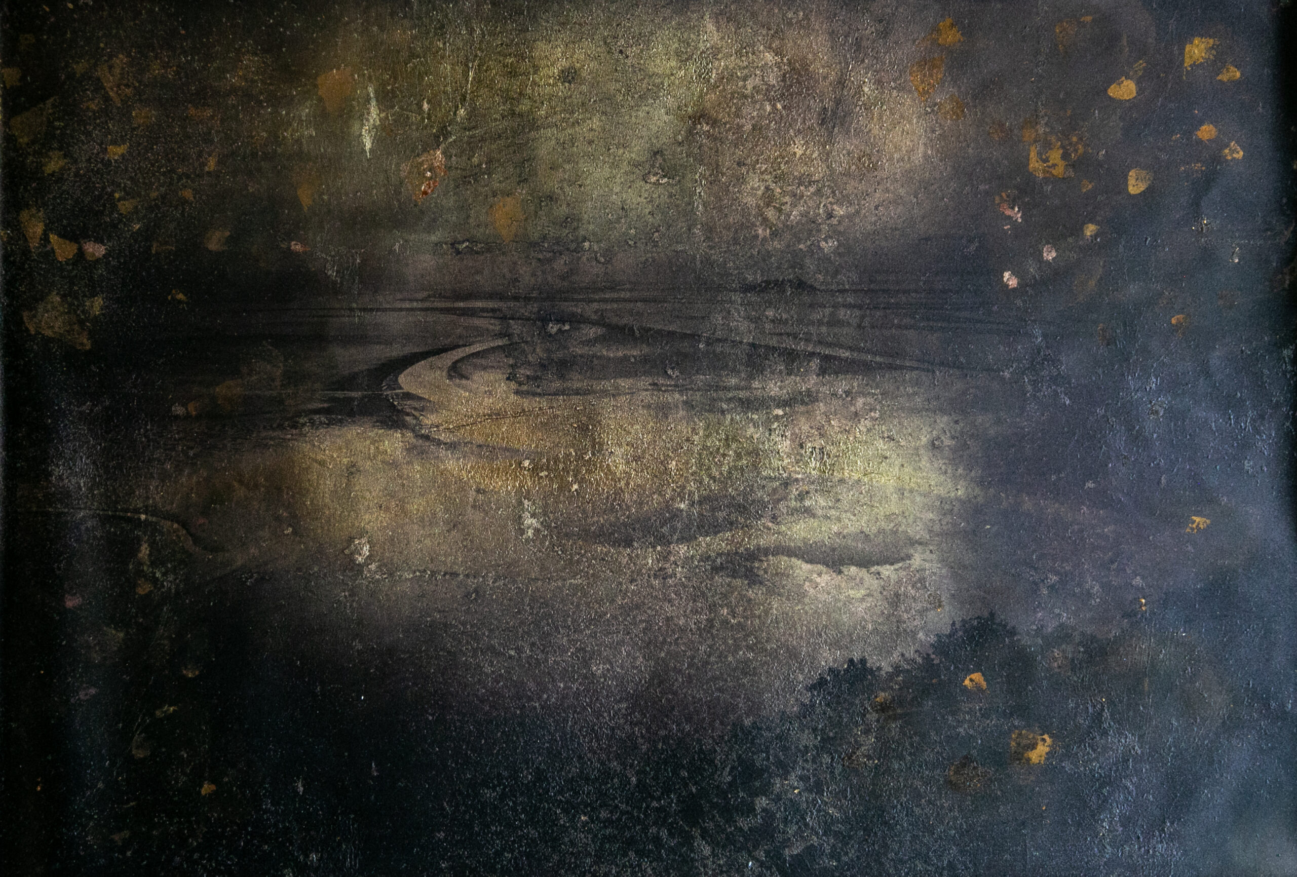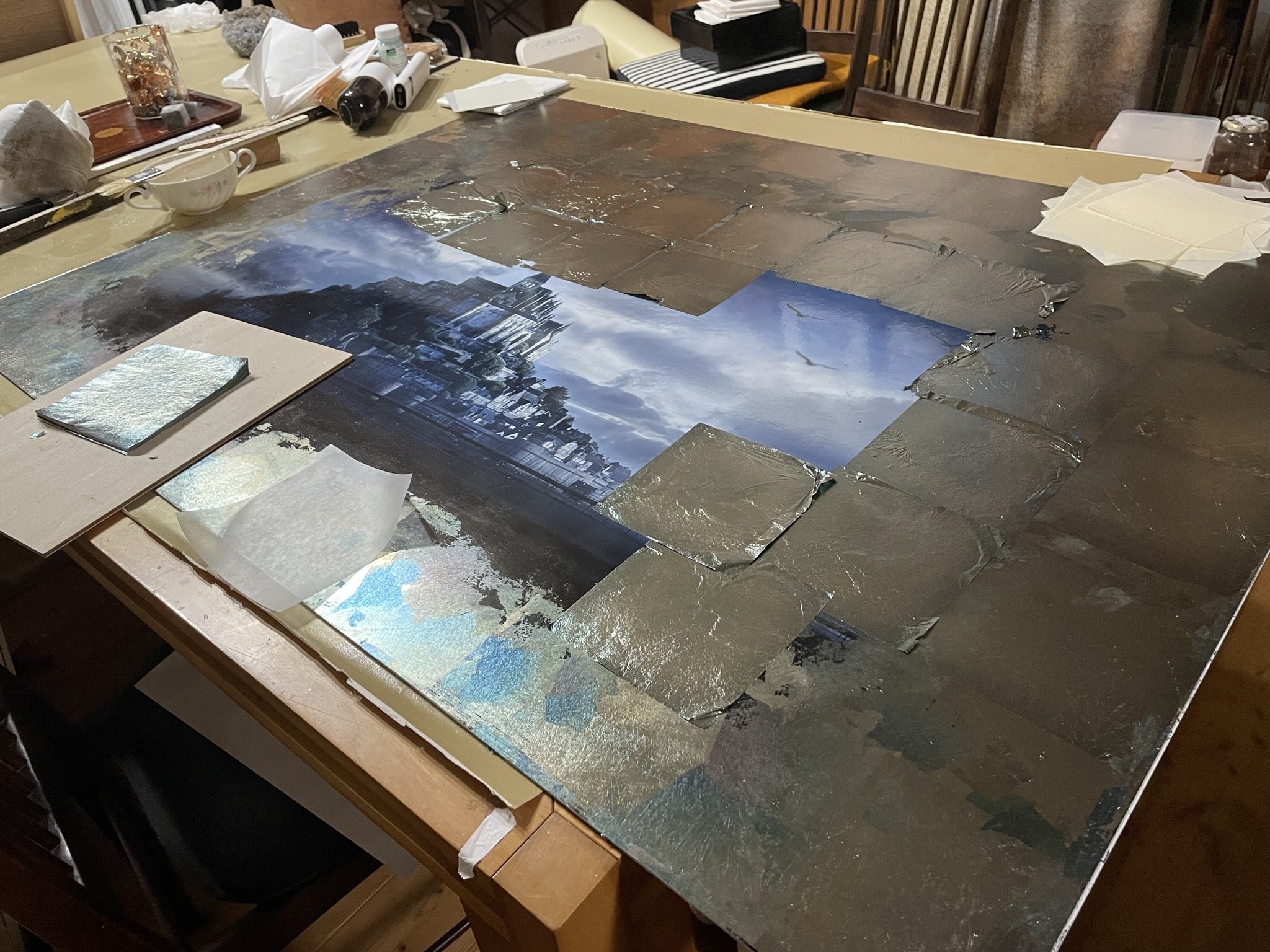 写真に金箔や銀箔を融合させた独自の表現を確立。